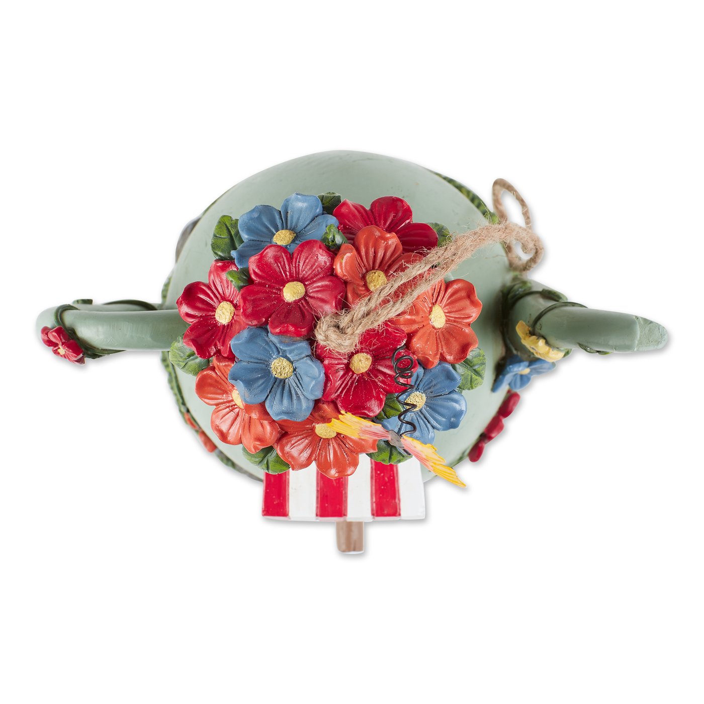 • This adorable teapot birdhouse will add colorful charm to your outdoor space while providing a fun home for the birds in your yard.