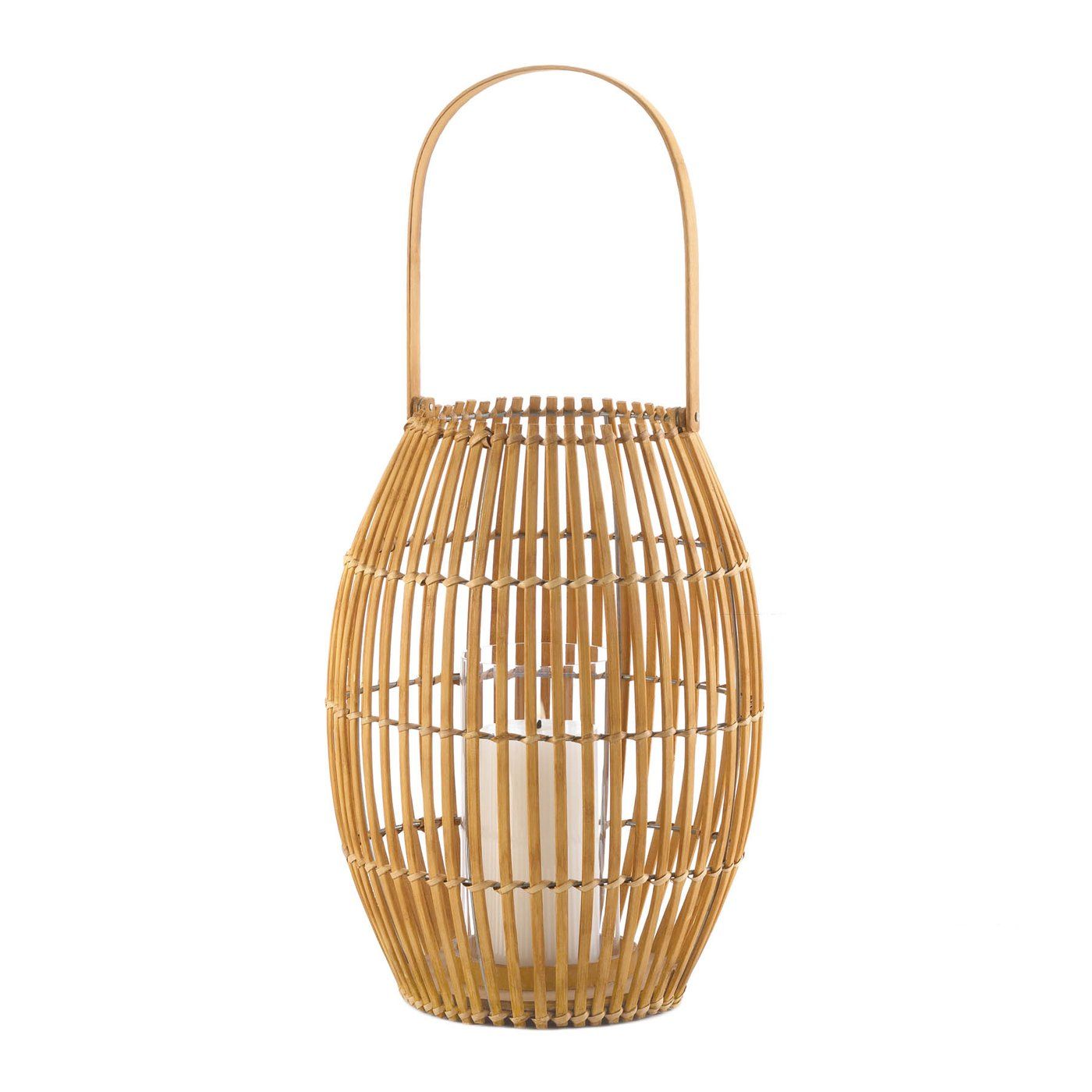 • Bring neutral design elements into your decor with this large bamboo lantern. The decorative lantern includes a glass candle holder so you can create a calming candlelight display. With its clean lines and natural wood finish, this bamboo lantern will make your home feel a little more Zen. Place on an end table, coffee table, or a cabinet, mix with other chic decor for a polished finish. Add a flameless candle for a gentle, warm glow.
