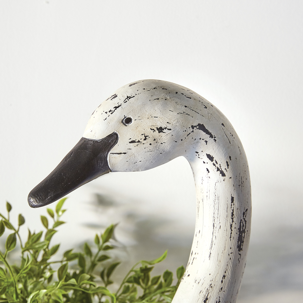 Display this large swan statue on a tabletop to create a massive centerpiece. This item is classy and sleek, featuring hand painted black feathers and features. This item is made out of resin and is made to have the look and feel of painted wood.
