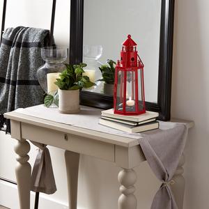 Decorate your home like a sleepy seaside village with this charming lighthouse lantern. With glass window panes, a contemporary galvanized metal top, and a metal handle for easy hanging this lantern is both sturdy and chic. Place a candle or LED of your choice inside the lantern to illuminate your space in a soft and serene glow. Use it to create a centerpiece for parties or special events, display on a countertop or coffee table, or to accent beach themed décor - available in a variety of styles and colors!