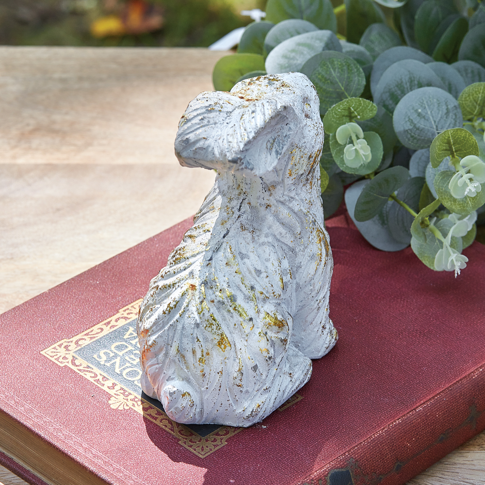 Introducing our Rustic Cottage Selection - carefully designed to capture the essence of a serene countryside scene with a gilded, elegant touch. These charming pieces add a touch of whimsy to a space. Our lovely Valiant Bunny Figurine can be displayed on a shelf, mantle, or as a centerpiece. This item is crafted from concrete.