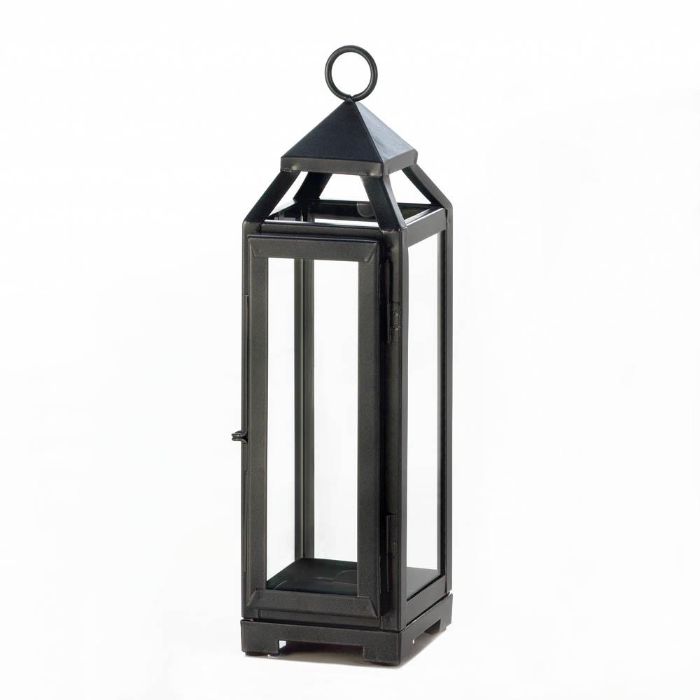 Simply stunning! This sleek candle lantern is a gorgeous way to light up any room in your home, indoors or outside. The dark gray iron framework and clear glass panels let the light from a single pillar candle shine bright. Candle not included. Weight 1.4 pounds. 3.62" x 4" x 12.8". Iron, Glass. UPC Number: 849179033255.