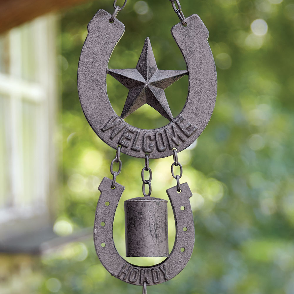 Home > Western Horseshoe Wind Chime - Rustic Outdoor Decor with Cowboy Charm